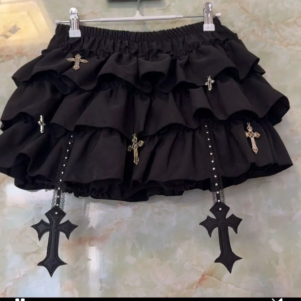 🔥 Váy Puffy Ngắn Chống Chói Phong Cách Punk Tối Màu, Thiết Kế Chữ Thập Độc Đáo đang giảm giá!