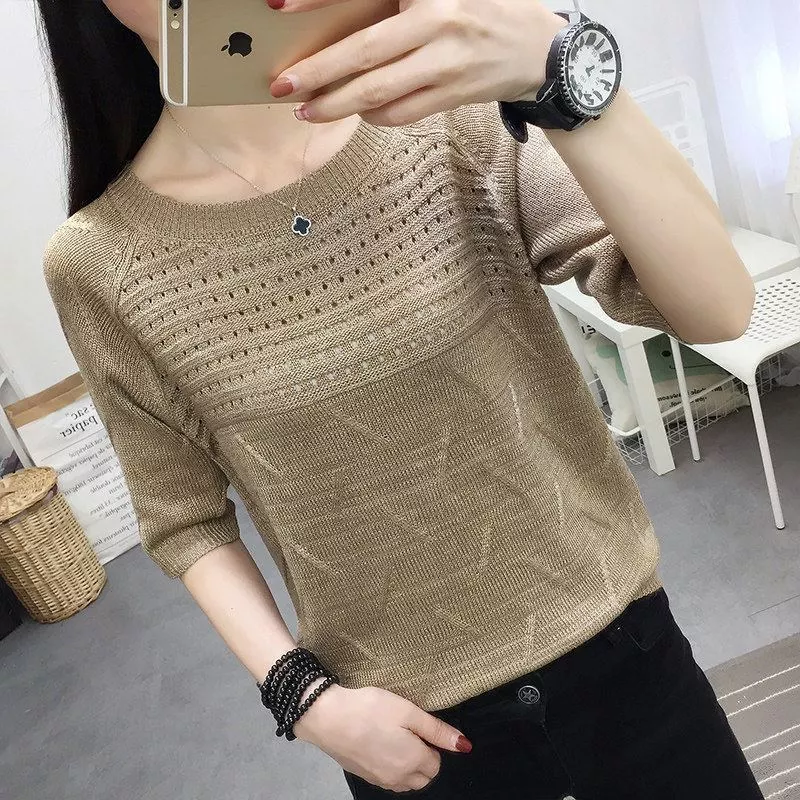 🔥 Mẫu áo thun ngắn tay dệt kim dáng rộng mới dành cho nữ, phù hợp mùa hè đang giảm giá!