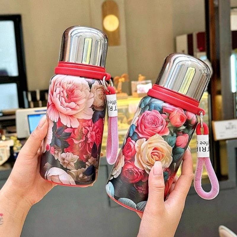 - Bình giữ nhiệt in hình hoa dung tích 400ml: Phù hợp cho những người muốn một ly cà phê hoặc trà nhỏ.