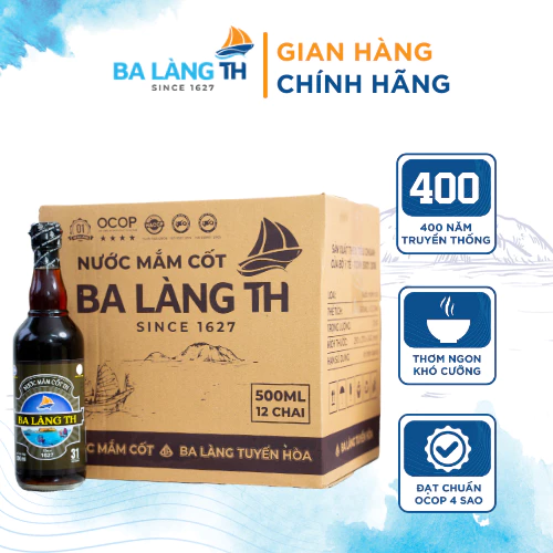 🔥 [Thùng 12 chai] Nước Mắm Cốt Ba Làng TH 400 Năm Truyền Thống Chai Thủy Tinh 500ml đang giảm giá!