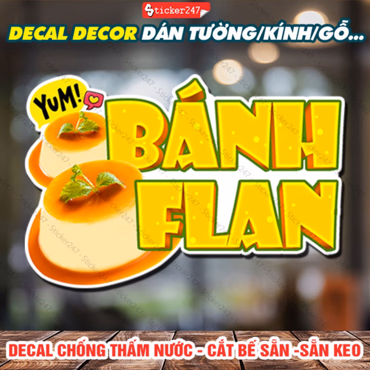 🔥 Tranh Dán Tường Bánh Flan ? Decal Dán Tường Trang Trí Quán Trà Sữa, Cà Phê – Chống Thấm Nước, Chống Nắng, Cắt Sẵn đang giảm giá!