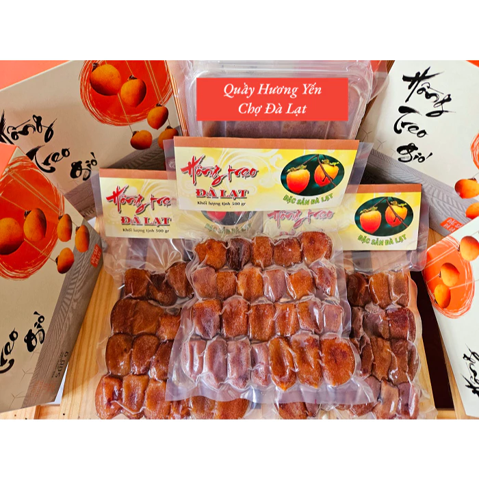 Hồng treo gió Đà Lạt tại Quầy Hương Yến chợ Đà Lạt được bán với giá 60.000 đồng / gói, rẻ hơn so với giá bán thông thường là 77.400 đồng . Sản phẩm này được đảm bảo chất lượng, không bán hồng Trung Quốc.
