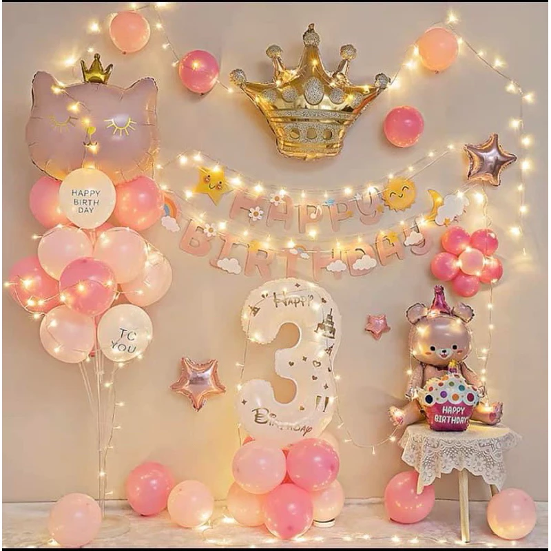 🔥 [ Tặng Đèn ] SET trang trí sinh nhật Handmade kiểu Hàn Quốc cực chất phù hợp cho mọi tuổi [Tặng kèm BƠM + KEO DÁN] đang giảm giá!