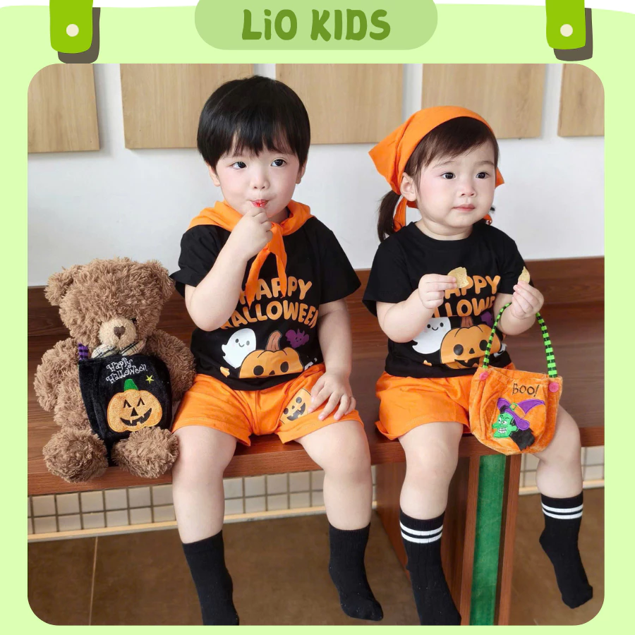 🔥 (Kèm túi đựng kẹo) Set cộc Halloween bí ngô đen cam kèm khăn chất cotton mềm mịn cho bé 9-21kg đang giảm giá!