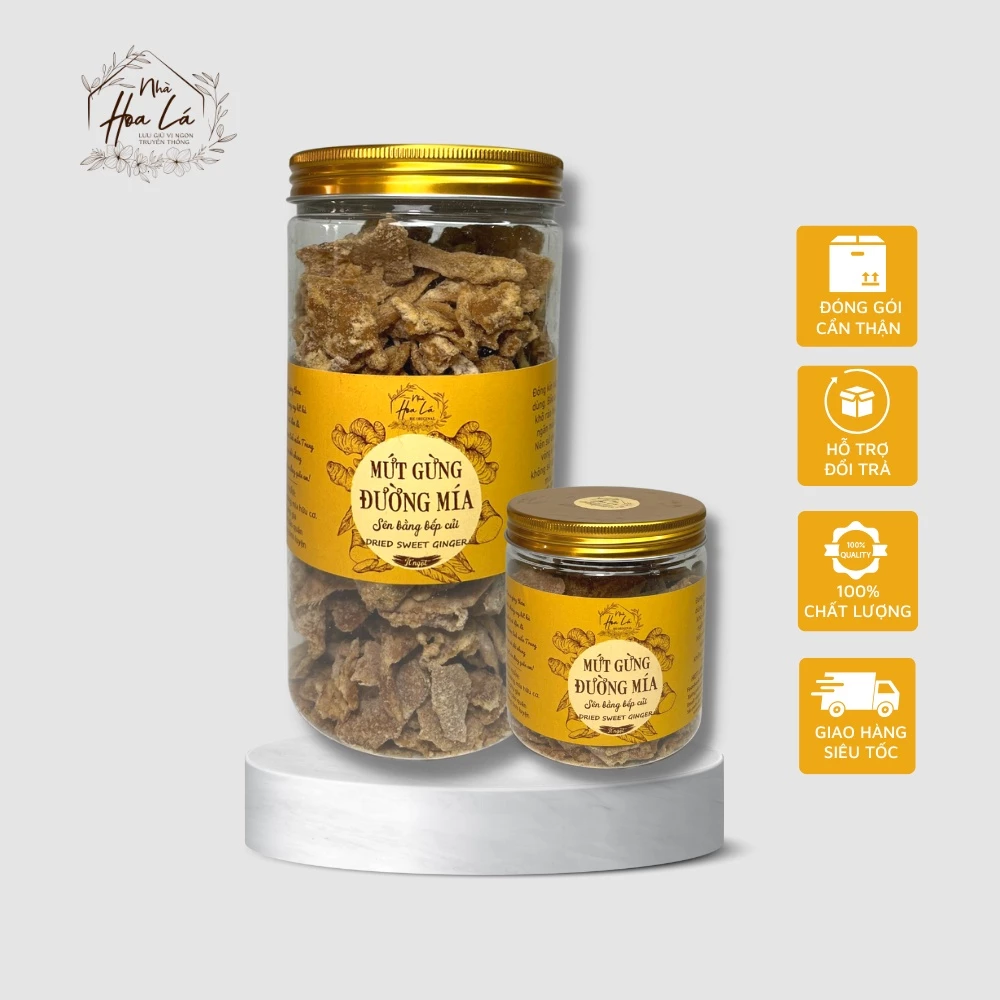 Một trong những lựa chọn hàng đầu cho bạn là Mứt Gừng Đường Mía Huế Loại 1 Nhà Hoa Lá Sên Bếp Củi Ít Ngọt Làm Ấm Cơ Thể. Sản phẩm này được làm từ gừng tươi và đường mía tự nhiên, không chứa các chất phụ gia hay bảo quản.