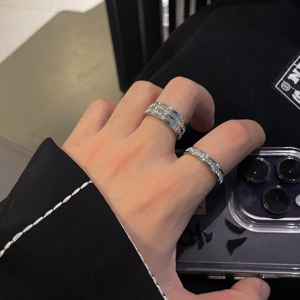 Nhẫn Thép Titan Không Màu Đính Kim Cương Thời Trang Hip Hop Hàn Quốc