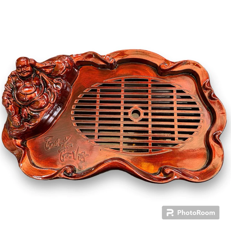 🔥 Khay trà Minh Hải dáng Phật Di Lặc nhựa giả vân gỗ sang trọng cao cấp đang giảm giá!
